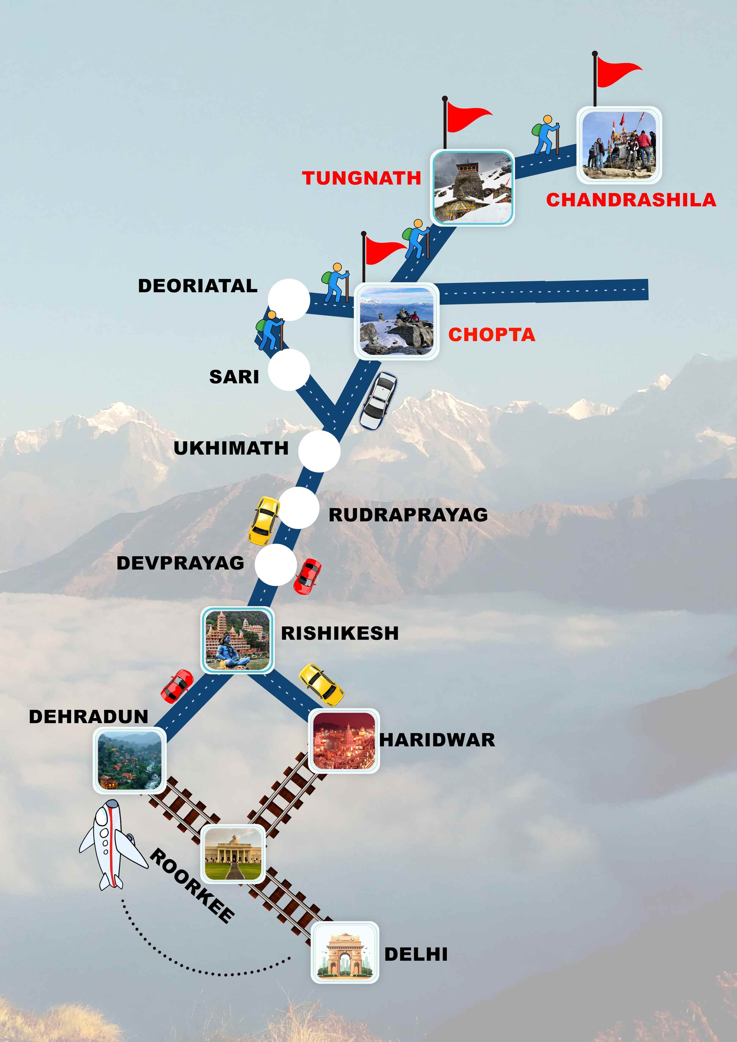Relax in the morning and explore the local markets or take a dip in the holy Ganges (optional). Depending on your departure schedule, proceed to the railway station or bus stand for your onward journey. Depart with cherished memories of the Chopta Tungnath Trek.